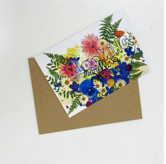 Yellow Colourful floral - a short run floral printed card from my artwork